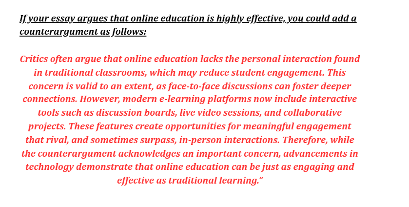 Here’s the practical example of properly adding the counterargument: