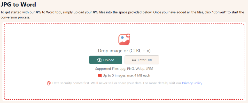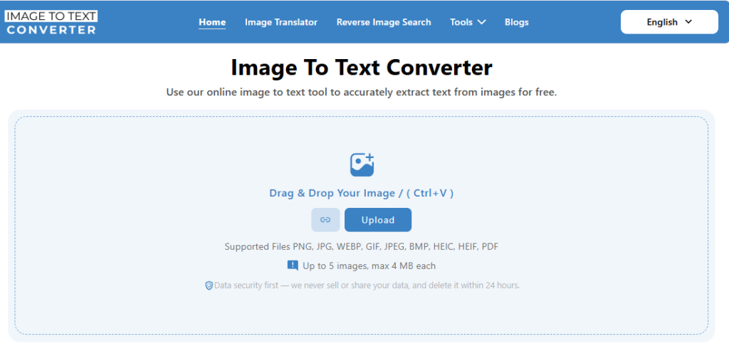 - Visit the image to text converter tool.